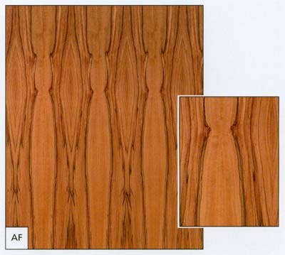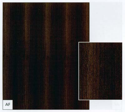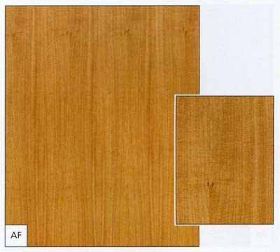 - borovice, bříza, buk, dub, dub evr. radiální krájený, jasan světlý, javor evr., javor amer., mahagon, olše, ořech amer., smrk, třešeň amer., zebráno